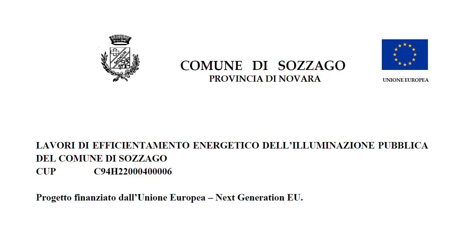 - Lavori di efficientamento energetico dell’illuminazione pubblica del Comune di Sozzago. Accertamento risorse assegnate[.pdf 112,06 Kb - 05/01/2023]